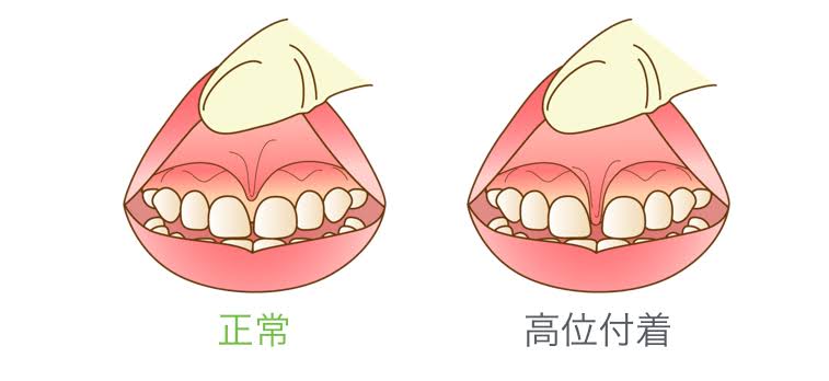 2歳までは、上唇小帯が太く、歯ぐきの頂上から上の前歯の間に入り込んでいることが多く、健診などでご指摘をされることが良くあります。