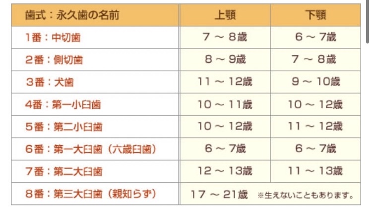 さて!大人の歯に生え変わる基準の時期を知っていますか?