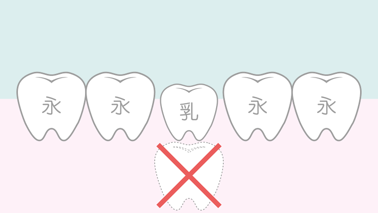 このような場合、大人になっても乳歯を使い続けるか、矯正治療や補綴(ほてつ)治療などが必要です。レントゲンで永久歯の有無についての確認や将来的な治療を決める必要がありますので、歯科医院を受診しましょう。